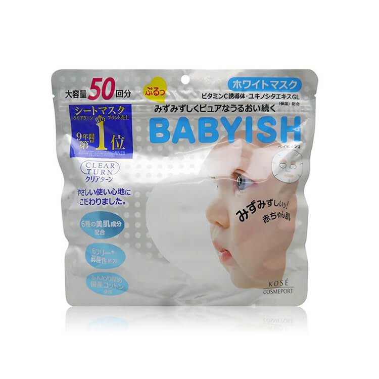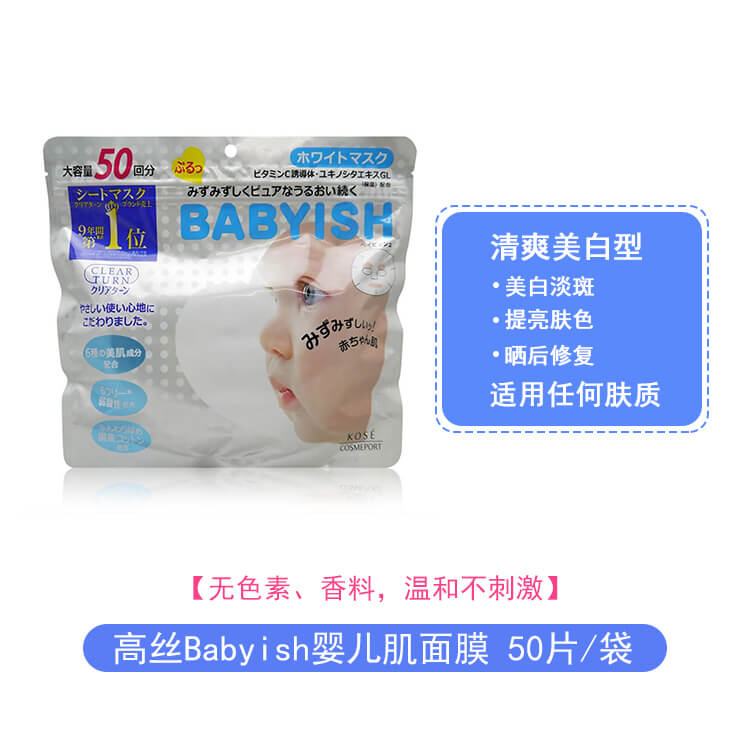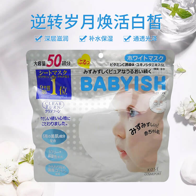 日本KOSE高丝babyish面膜VC美白保湿面膜贴持久锁水50片