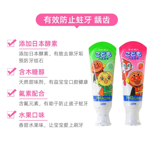 自营日本狮王面包超人儿童牙膏40g/口味随机