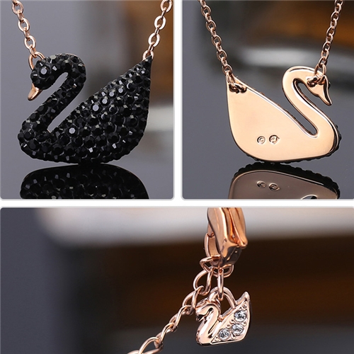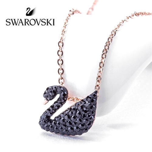 自营施华洛世奇SWAROVSKI黑天鹅项链玫瑰金色链小号